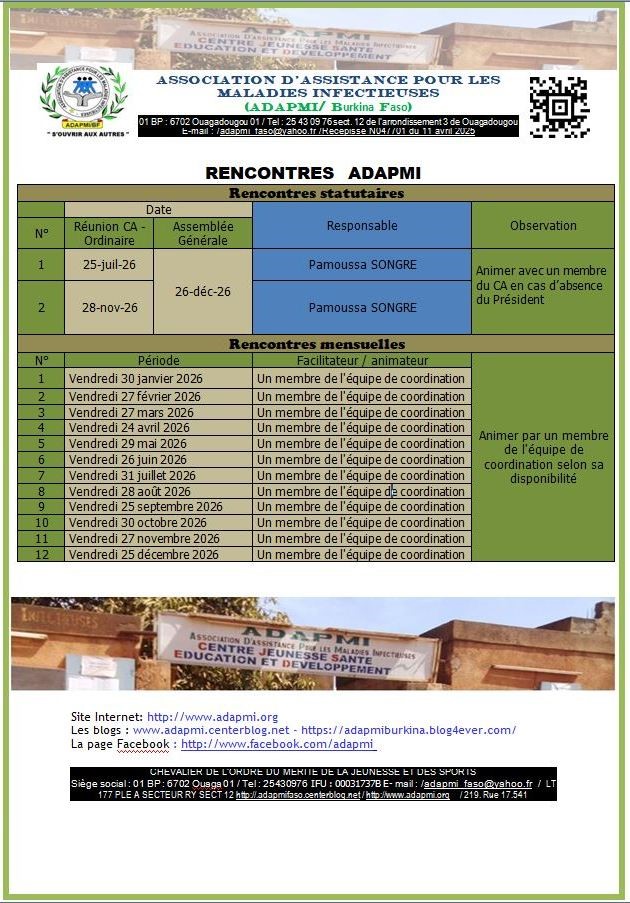 Calendrier de nos rencontres de 2026